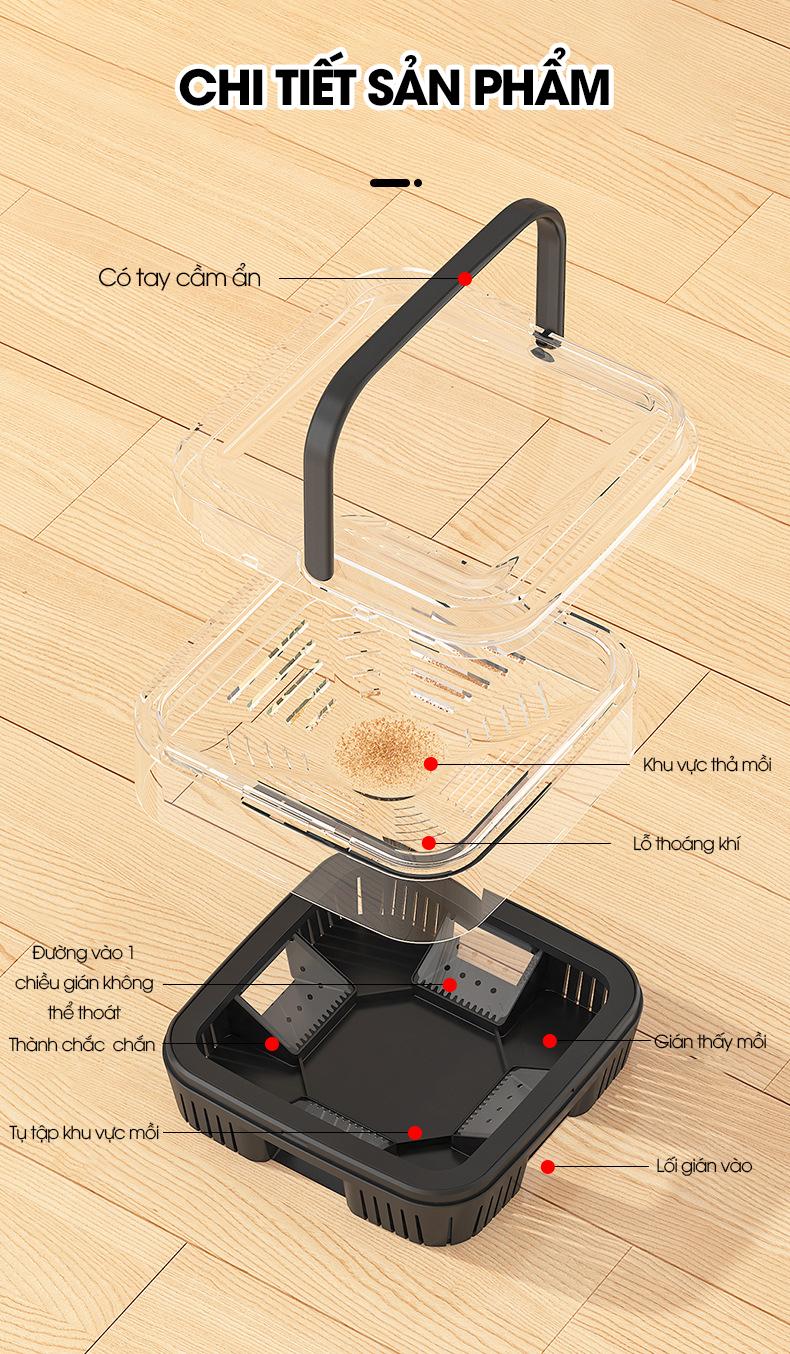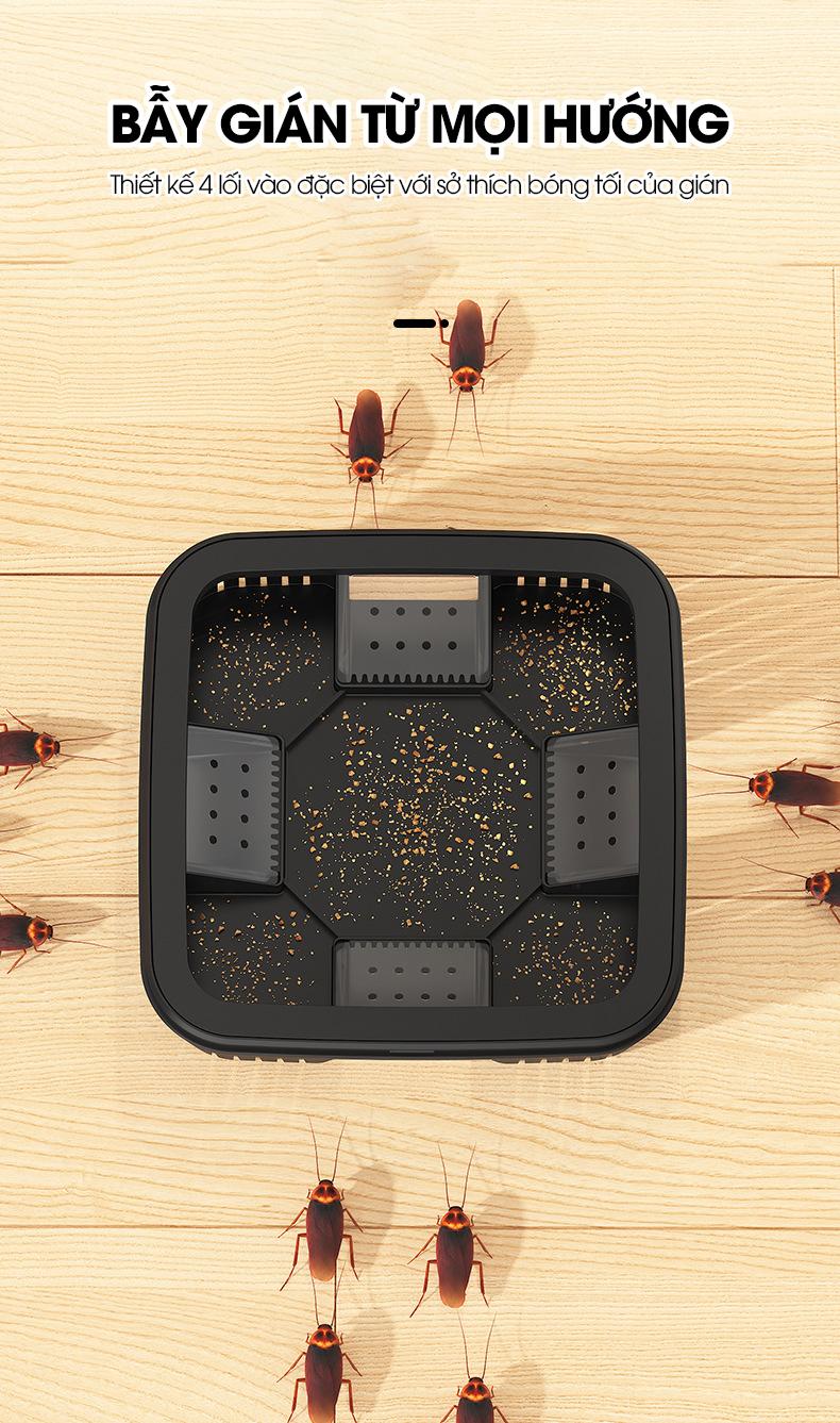 - Dụng cụ bẫy gián với thiết kế 4 lối vào bẫy gián từ mọi hướng