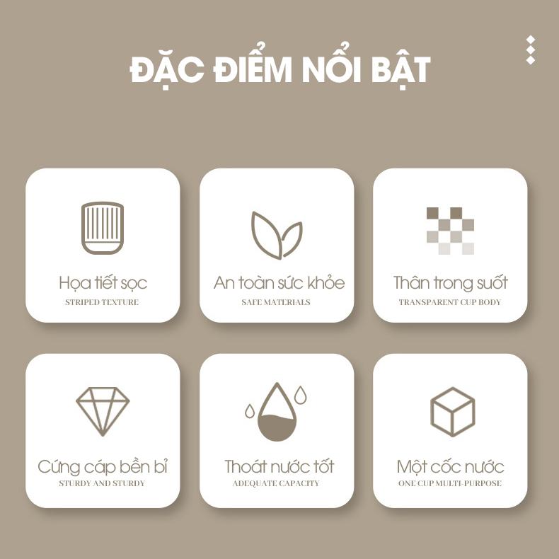 - Thiết kế để cốc và bàn chải thoát nước giữ cho vật dụng luôn khô ráo