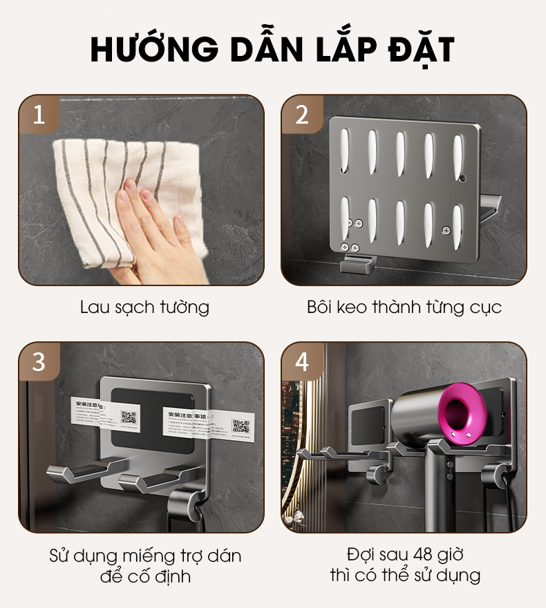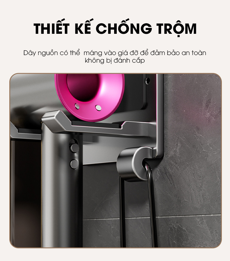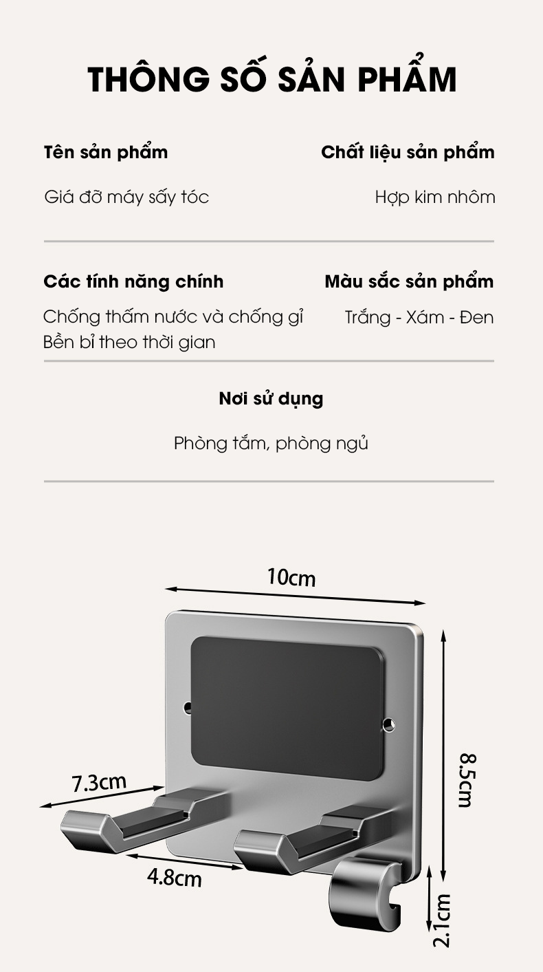 - Tên: Giá treo máy sáy tóc chống trộm dán tường LD-7706 nhôm hợp kim không rỉ