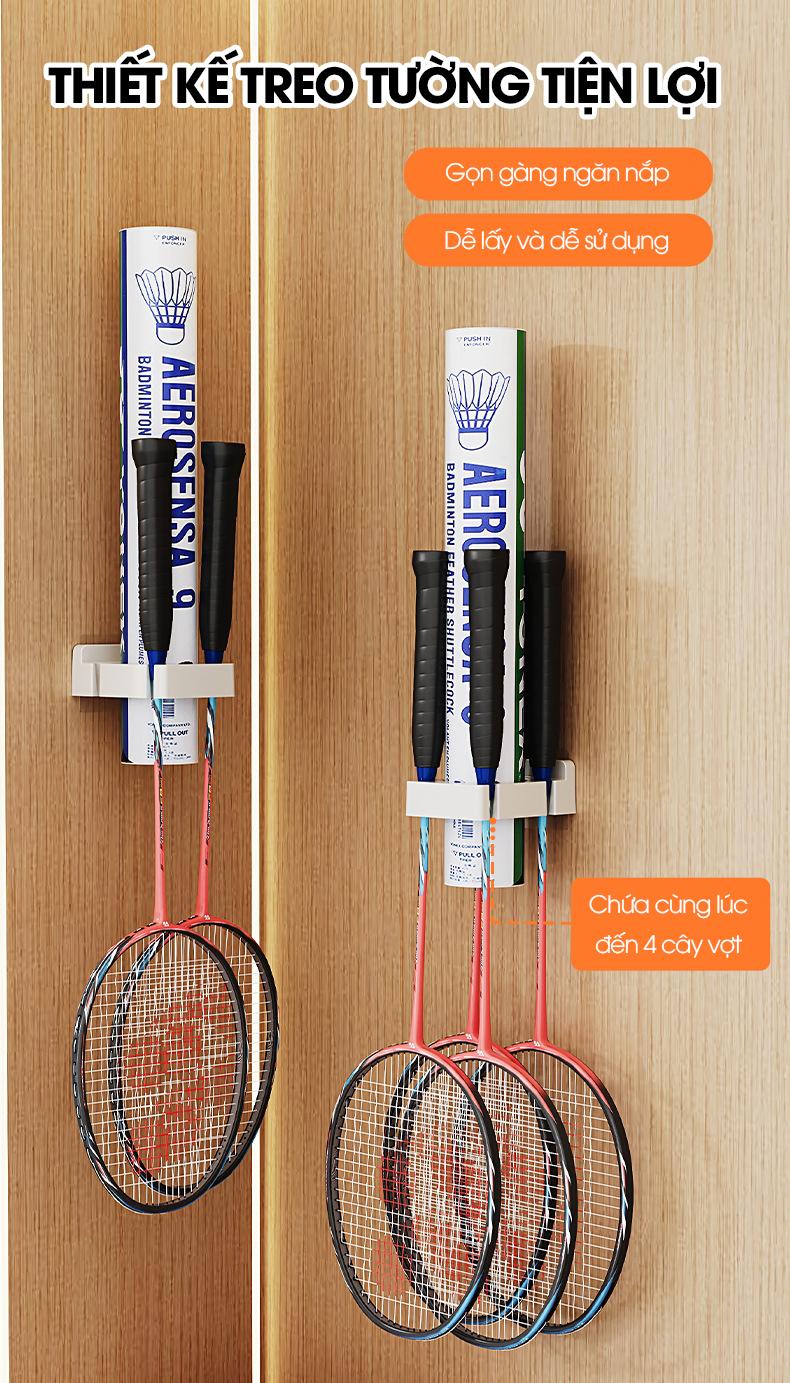 - Có thể để đến 4 cây vợt trên cùng 1 móc treo
