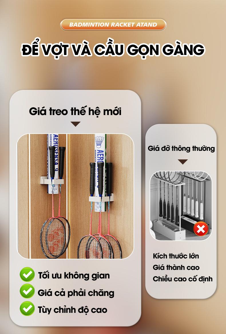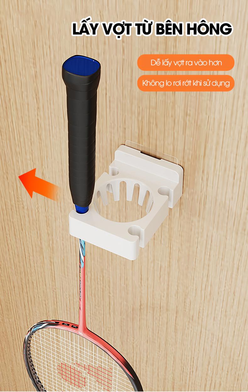 - Móc treo chuyện dụng giúp để vợt gọn gàng hơn