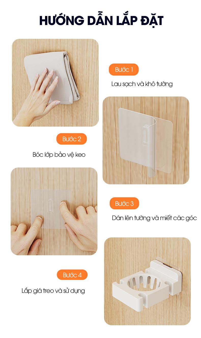 - Sử dụng miếng dán tường tiện lợi không cần khoan đục