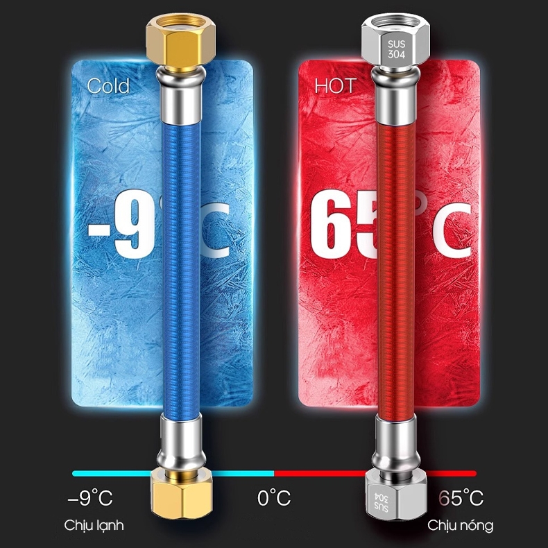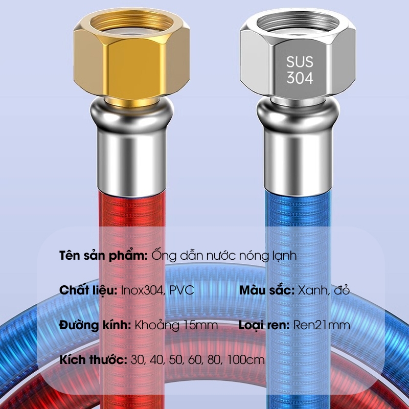 - Tên sản phẩm: Ống dẫn nước nóng lạnh, ống nối cho bồn lavabo, bồn vệ sinh, máy giặt, máy nóng lạnh, inox 304 uốn cong tùy ý dễ luồng lách