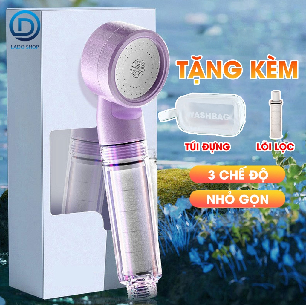 Vòi tắm hoa sen di động, vòi sen du lịch, vòi sen cầm tay LD-9015 + tặng kèm lõi lọc thay thế và túi đựng tiện lợi